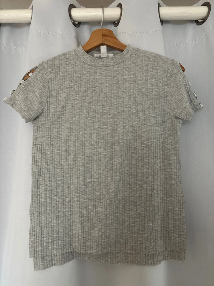 T shirt gris femme neuf avec petite ouverture sur les côtés - photo numéro 1