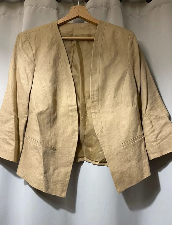 veste blazer en lin crème beige - photo numéro 1