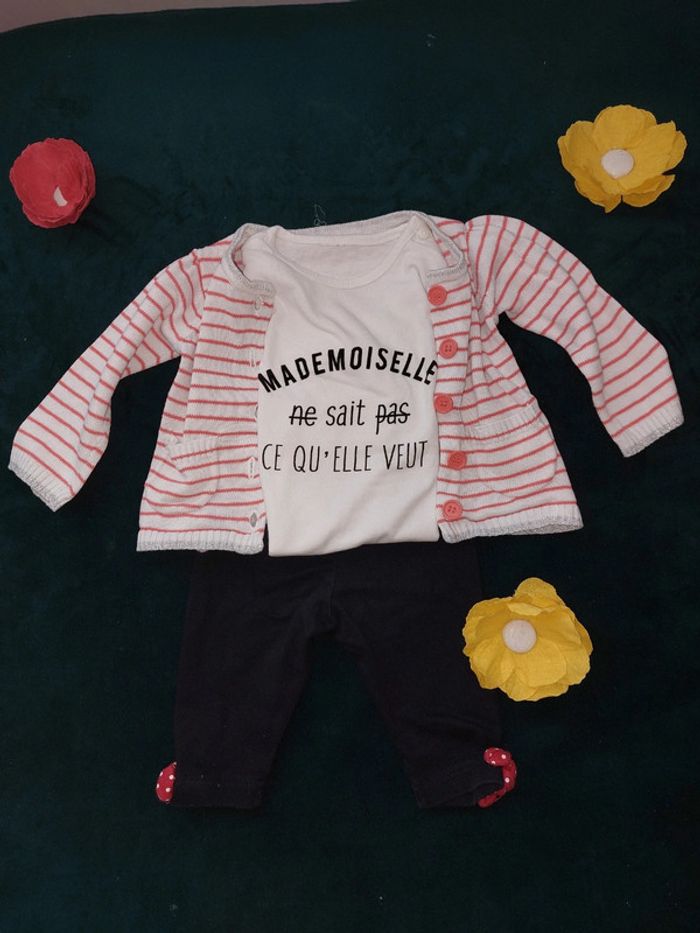 Faites des lots pour activer les rĂ©ductions 👍😉😊 #Clara8359filles3mois 3 mois Gilet Ă  lignes Gemo baby Sweat blanc Legging avec petits noeuds rouges