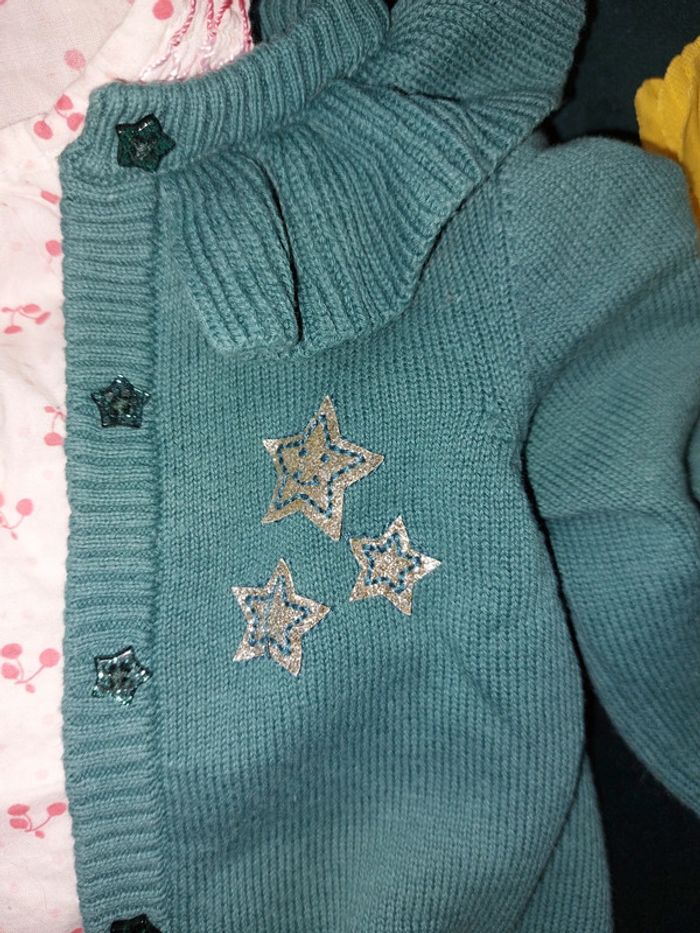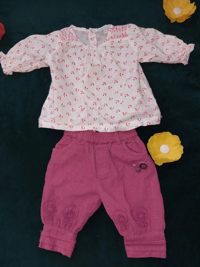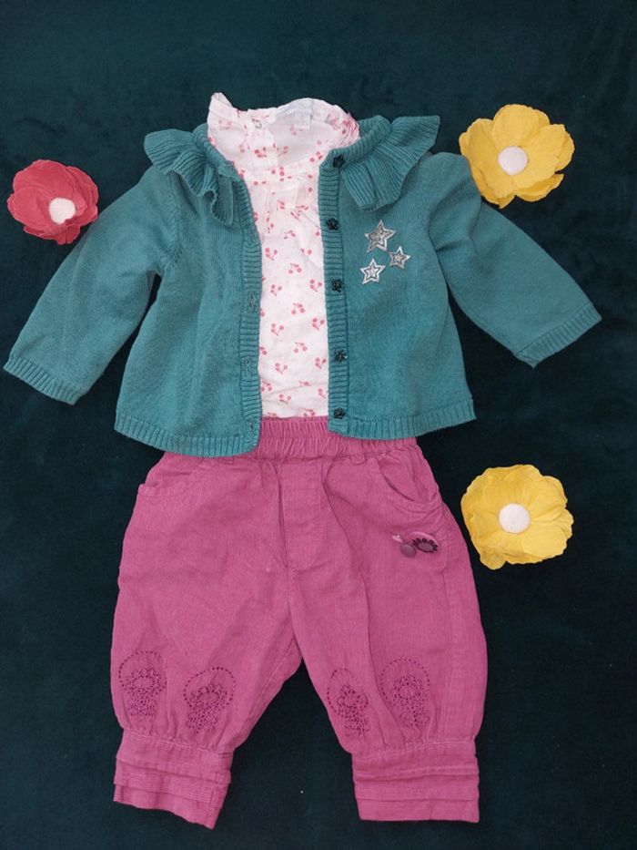 Faites des lots pour activer les réductions 👍😉😊 #Clara8359filles3mois 3mois Gilet vert émeraude , motif étoiles 🌟 Orchestra Pantalon rose fuchsia Velours Tout compte fait Blouse blanche motif cerises 🍒 🍒 🍒 Petit kimbaloo