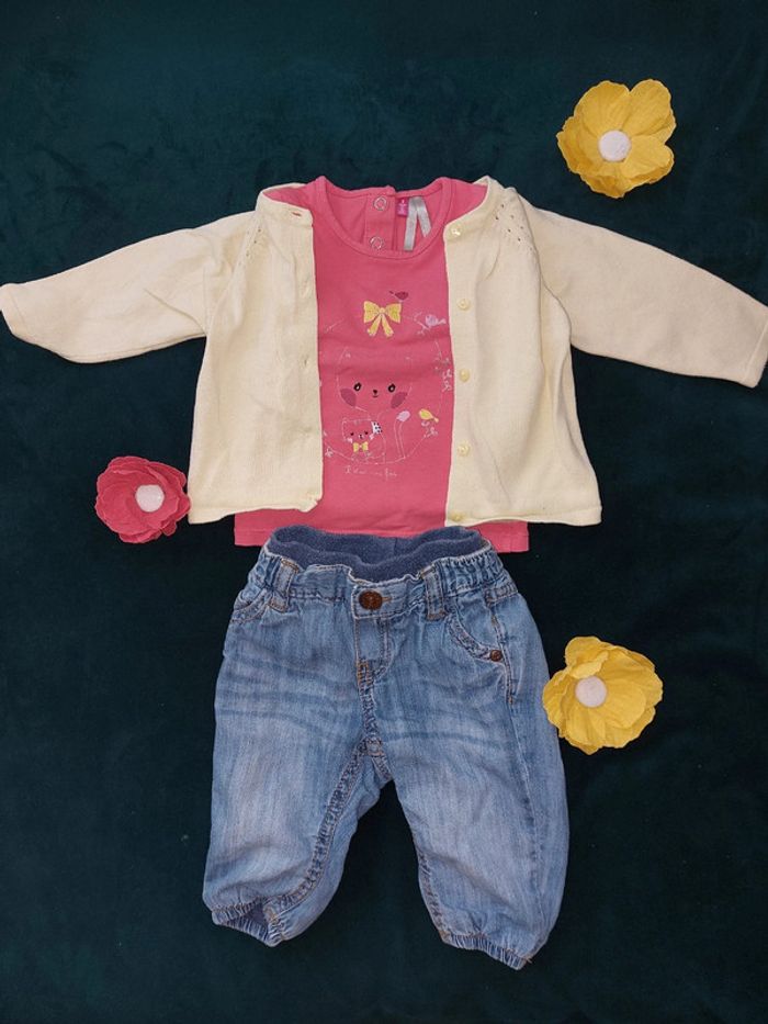 Faites des lots pour activer les réductions 👍😉😊 #Clara8359filles3mois 3 mois Gilet jaune pâle mes petits cailloux Jean h&m bleu taille élastique Sweat Rose 🌹 Motif chat 🐱 poussin 🐤 orchestra