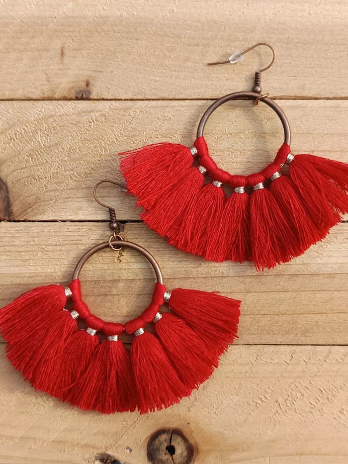 Boucles d’oreilles bohèmes Jolies boucles d’oreilles style bohème en fil rouge et anneau cuivre. Très légères et pleines de charme, parfaites pour l’été ! Envoi rapide et soigné. 📦 #bijoubohème