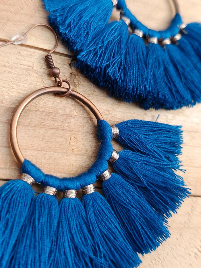 Boucles d’oreilles bohèmes Jolies boucles d’oreilles style bohème en fil bleu roi et anneau cuivre. Très légères et pleines de charme, parfaites pour l’été ! Envoi rapide et soigné. 📦 #bijoubohème