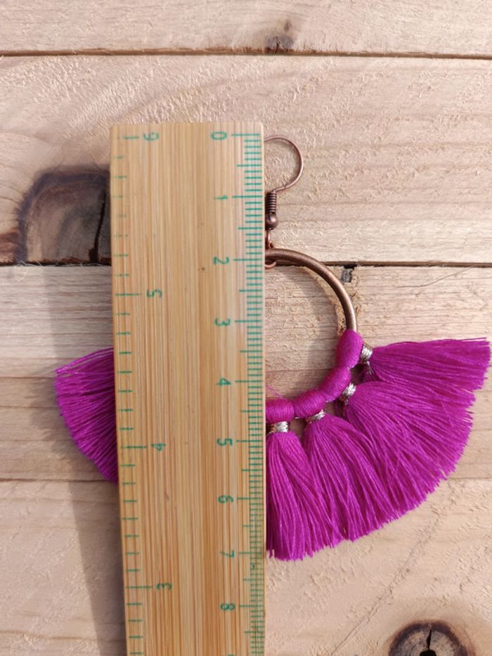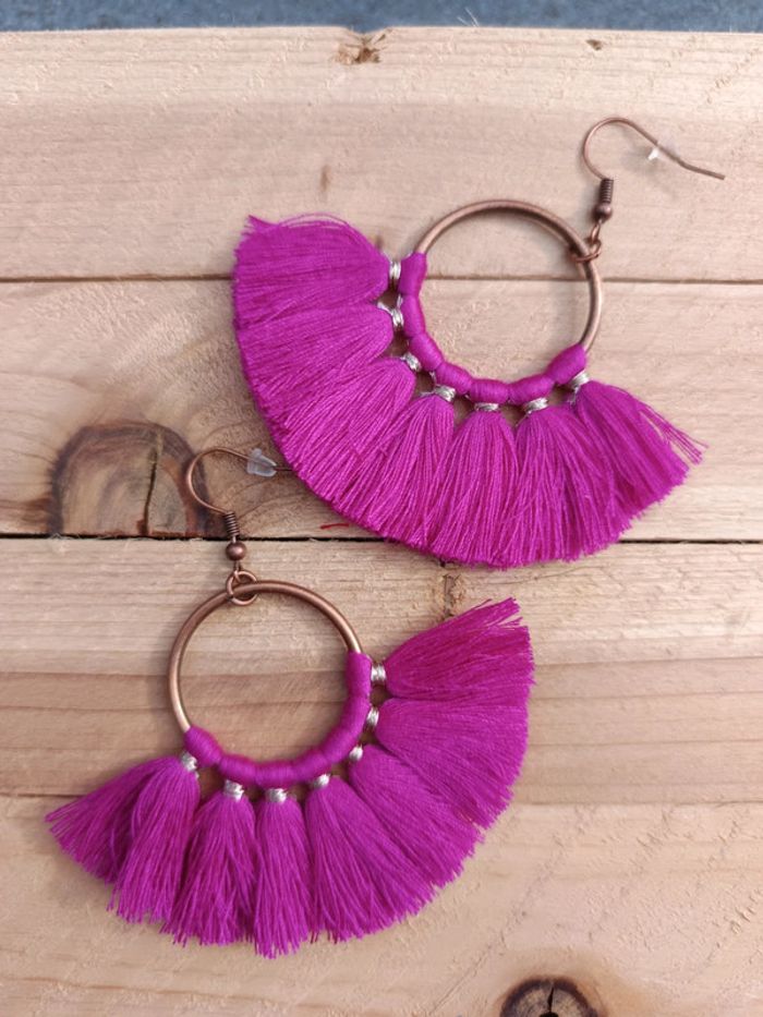 Boucles d’oreilles bohèmes Jolies boucles d’oreilles style bohème en fil violet fushia et anneau cuivre. Très légères et pleines de charme, parfaites pour l’été ! Envoi rapide et soigné. 📦 #bijoubohème
