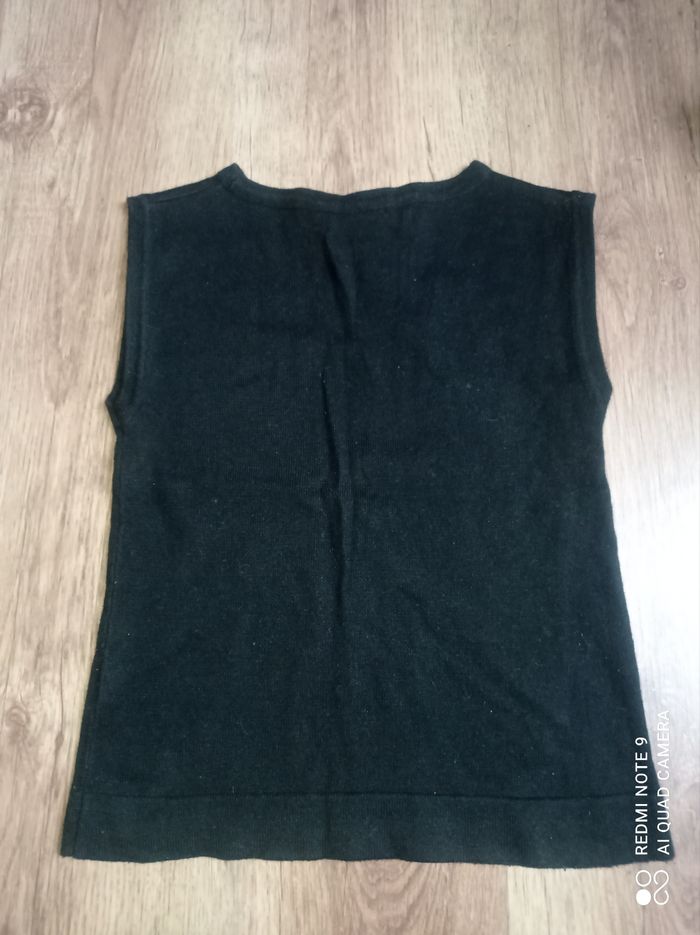 Pull sans manche acrylique. Coloris noir motif biche et faon argenté. Très bon état. 👉 Maison non fumeur sans animaux. 👉 Remise en main propre possible secteur Lille CHR. 🌺Voir mes autres annonces beaucoup de cosmétiques bio, vegan, solide en vente mais aussi livres, jouets, vêtements femme et enfants, chaussures, accessoires, bijoux... RÉDUCTION SUR LOT DES 2 ARTICLES🌺 📦 Envoi rapide des colis.
