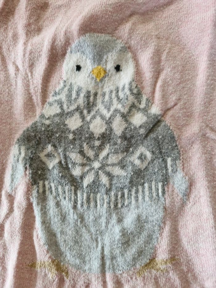 Pull fin rose pâle Motif pingouin gris et blanc Quelques bouloches visibles sur photos H&M 4-6 mois 68 cm