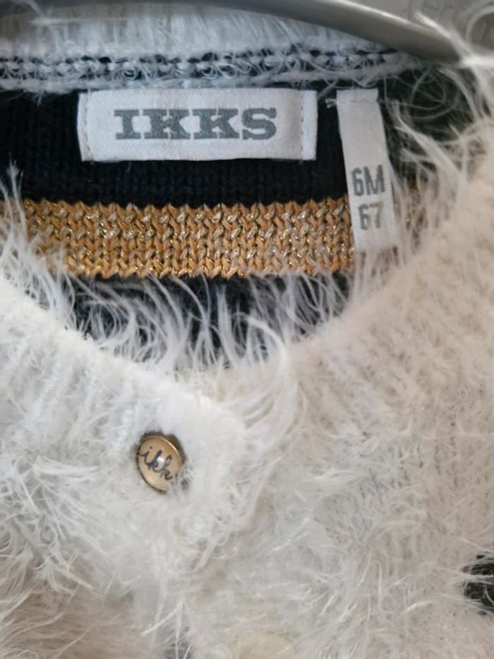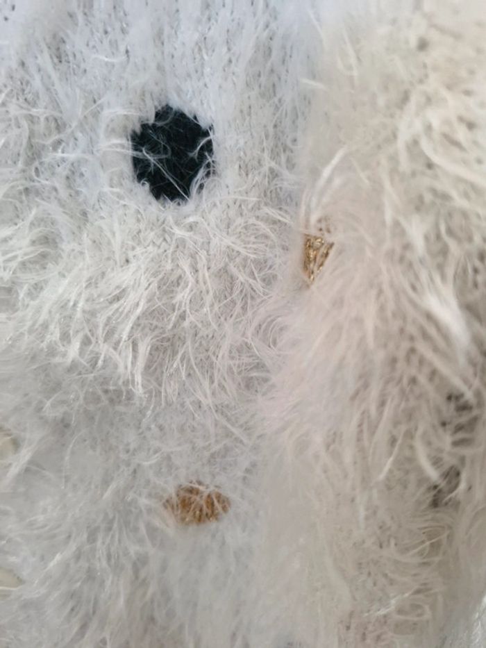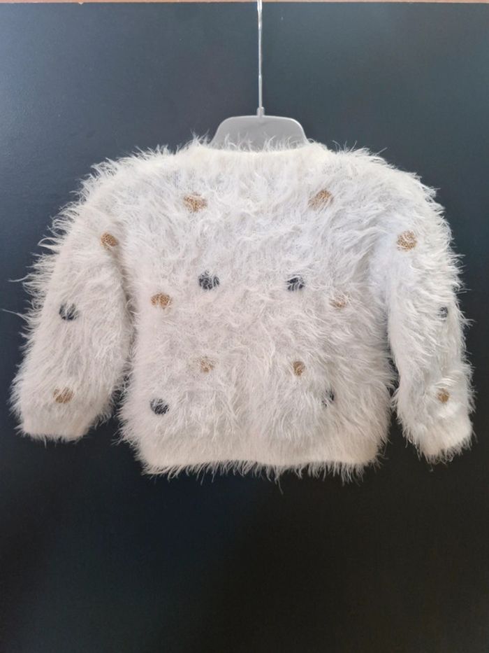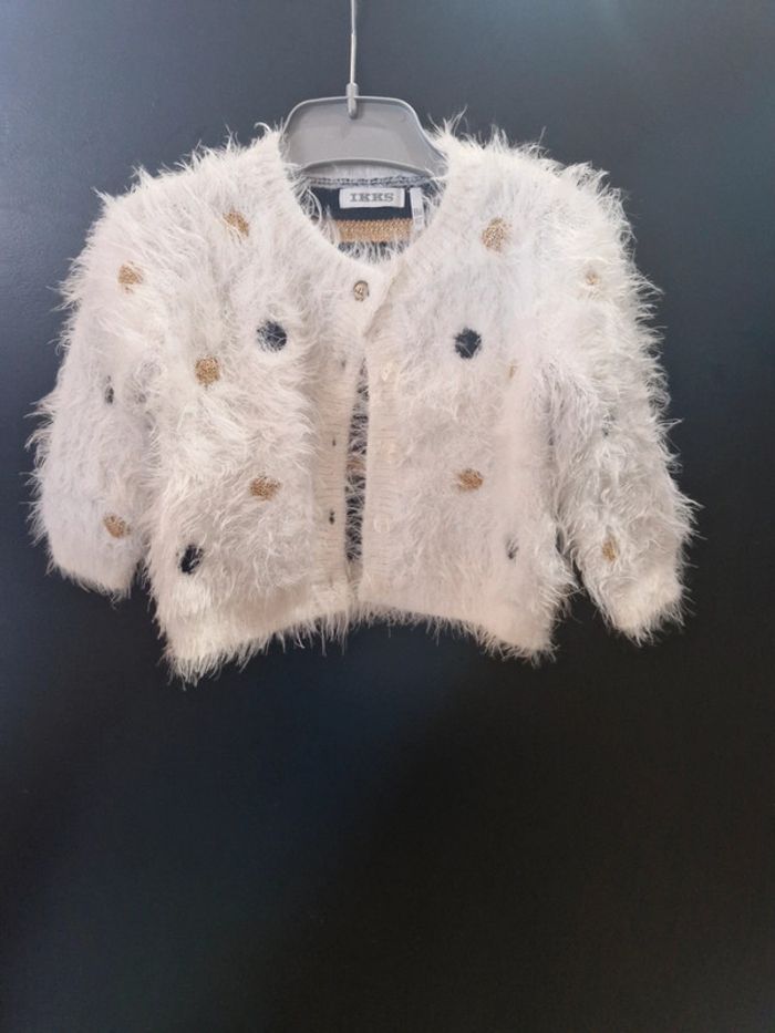 Gilet ikks 6 mois Blanc poils longs et pois dorés et noirs Fermetures par boutons