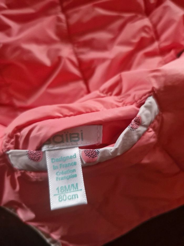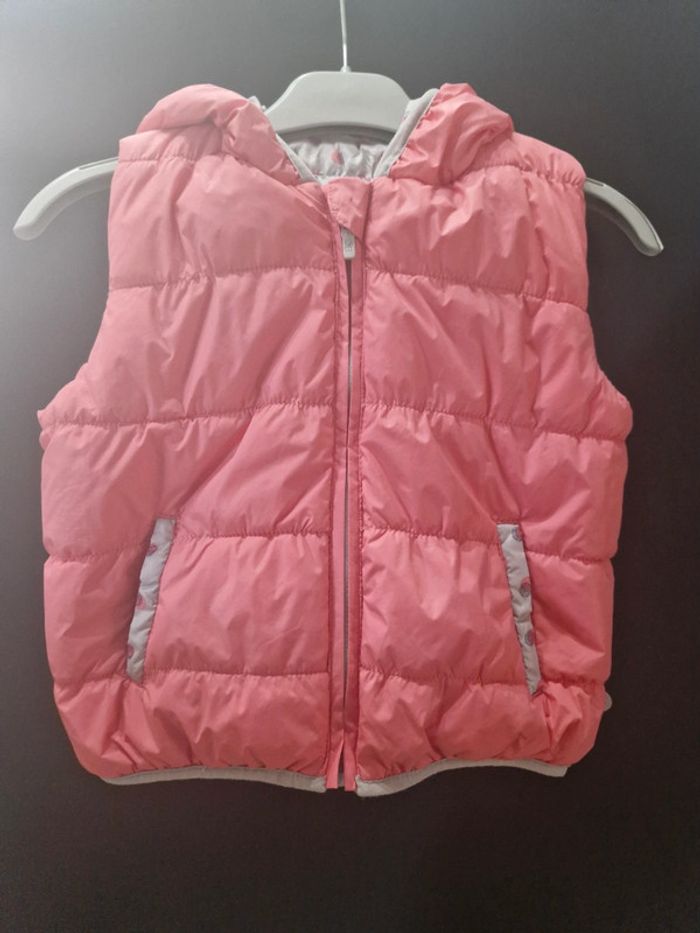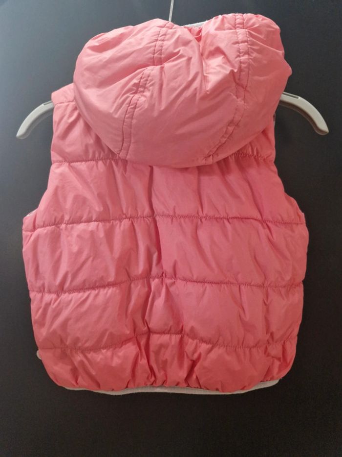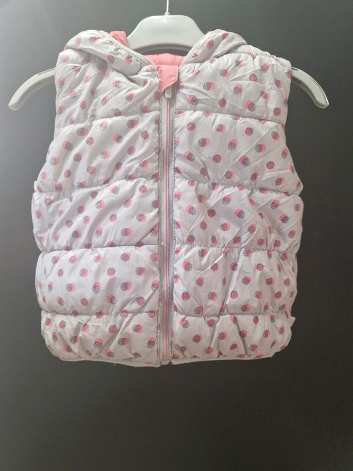 Veste doudoune sans manche réversible avec capuche Gris perle avec pois rose et gris d'un côté et rose de l'autre 18 mois Obaibi