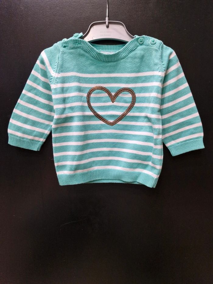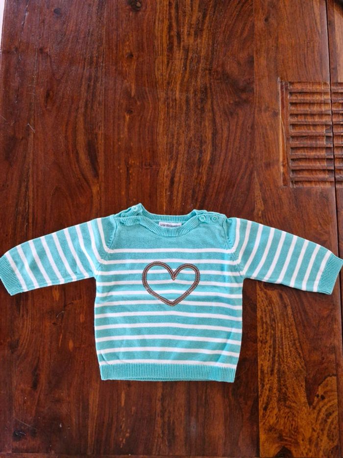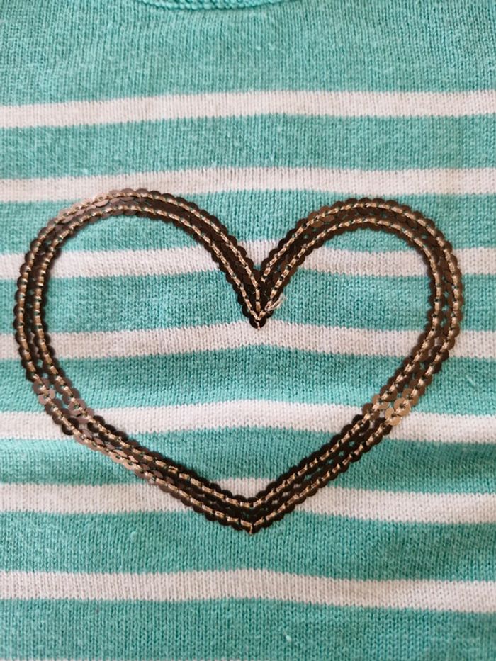 Pull manches longues Vertbaudet 6 mois Vert rayé blanc Motif cœur en sequins