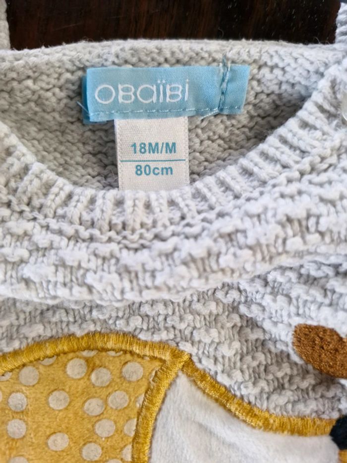 Pull avec motif hérisson en velours Obaibi 18 mois 60% coton