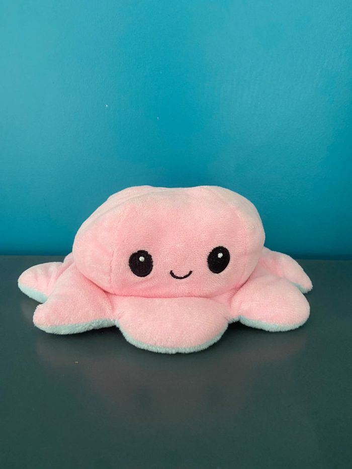 Poulpe/pieuvre réversible bleu turquoise et rose clair