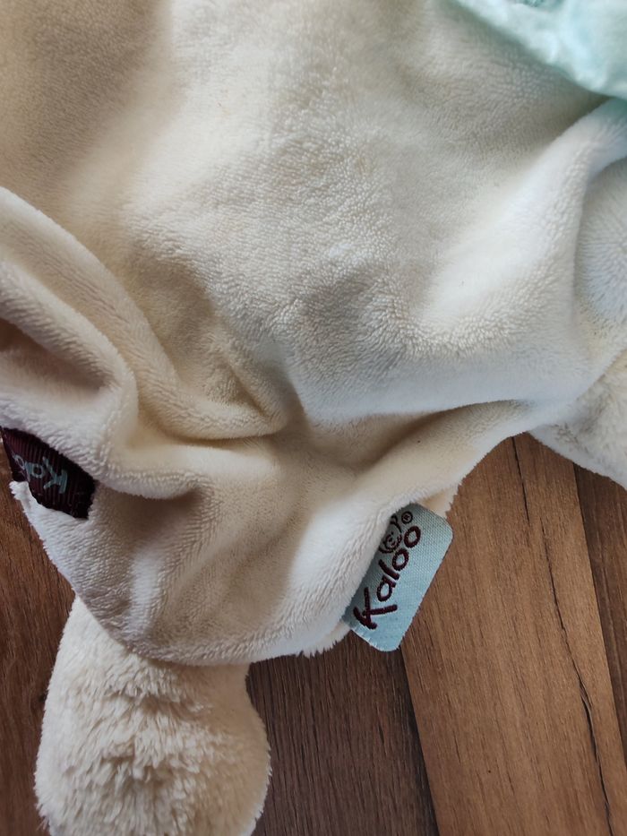 Doudou Kaloo Marionnette Lapin Beige bandana Foulard bleu Les Amis Tbe Étiquette marque présente 15 euros envoi en relais