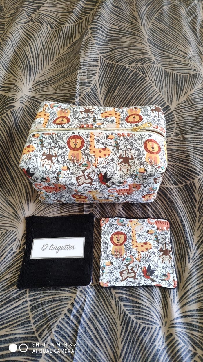 12 lingettes lavables et sa trousse de toilette moltonné neuve