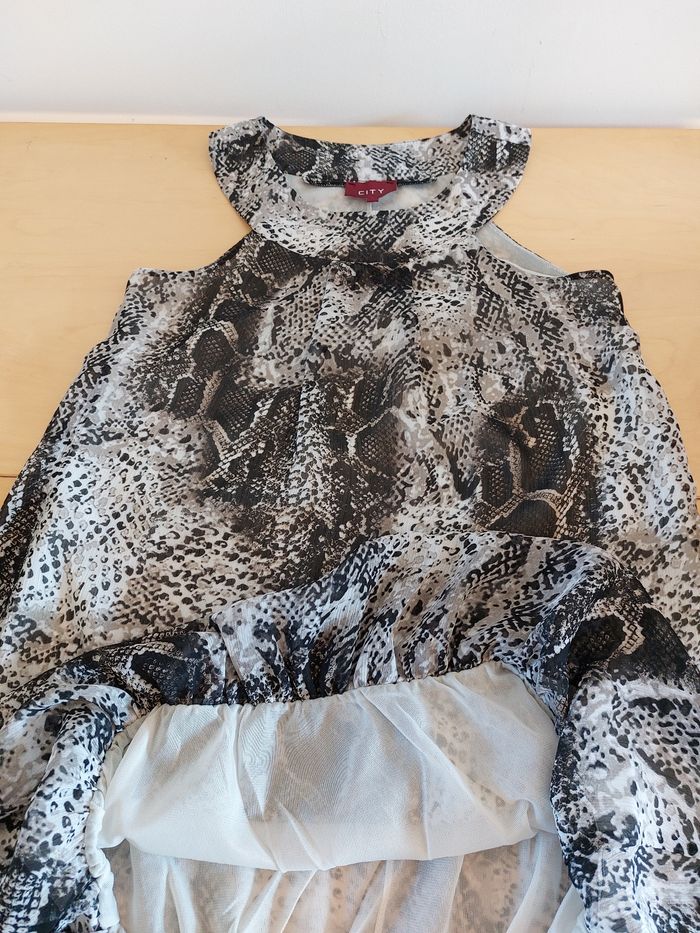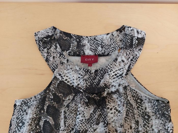 Tunique / blouse longue, sans manches, doublée et resserrée par élastique en bas. Marque La City taille 1 (34-36)