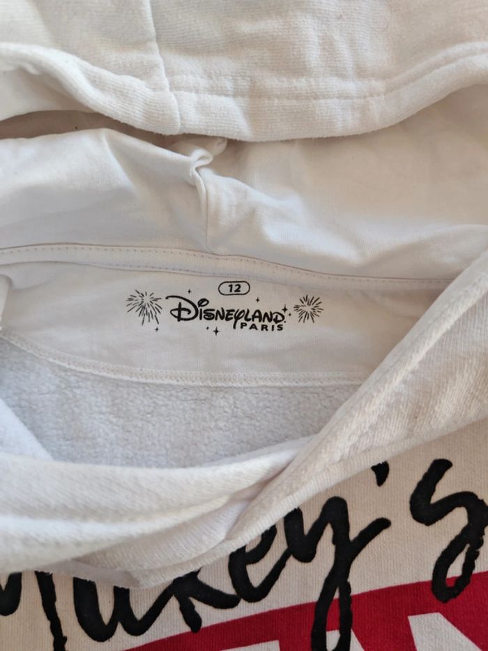 Pull à capuche fille blanc Minnie et Mickey, officiel Disneyland Paris Taille 12 ans