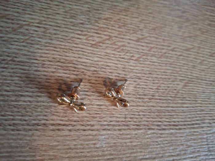 Boucle d'oreille femme ou fille en forme de nœud couleur doré - photo numéro 2