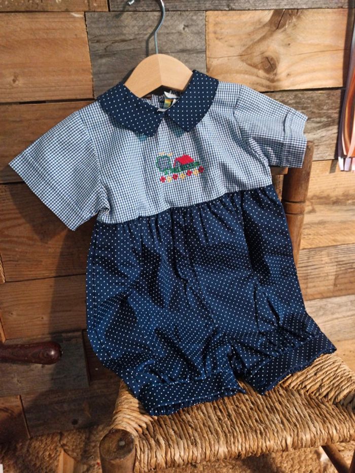 Grenouillère vintage bleu B.F.D création 6 mois - photo numéro 1