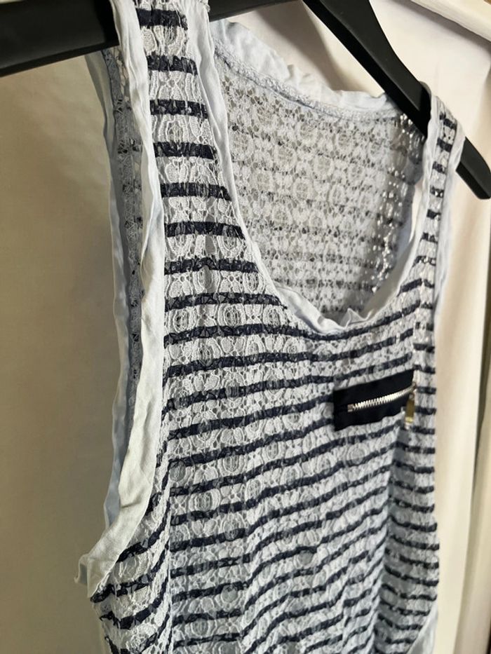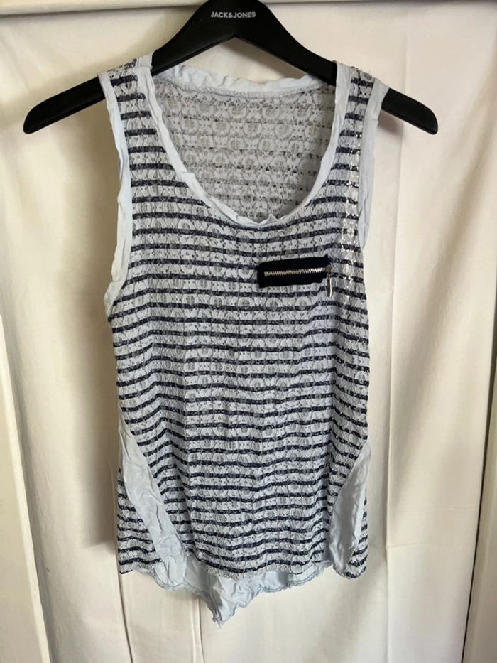 Vend beau débardeur deux matières: dentelle et tissus. Plus long sur l’arrière