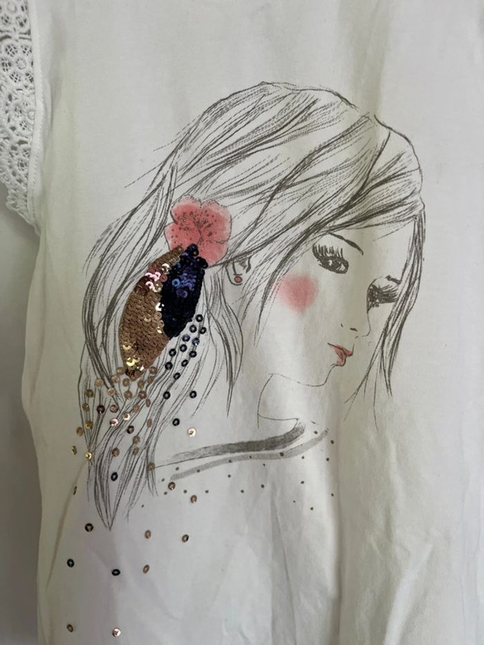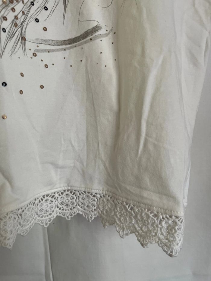 Vend joli débardeur croisé dans le dos, avec petite dentelle sur les bretelles et le bas. Quelques sequin sur le motif. Tissus épais