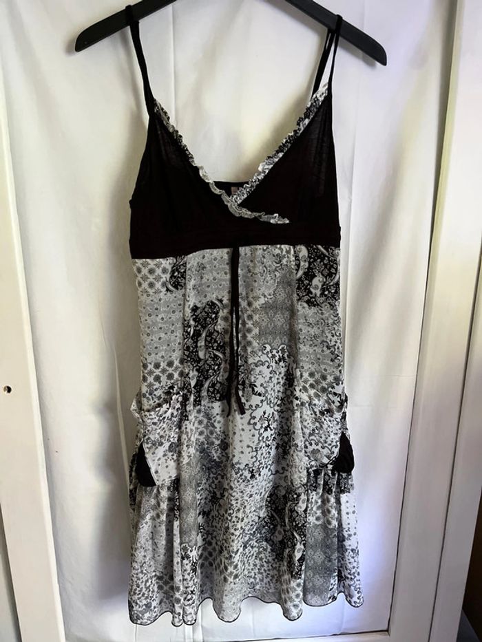 Vend robe courte et légère. Poche de chaque côté. Bustier croisé avec petit noeud en finissions. Longueur 93 cm