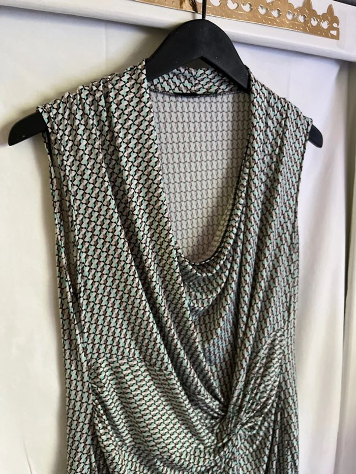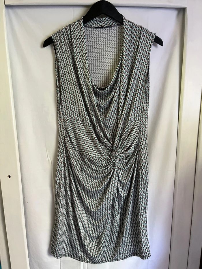 Vend robe sans manches aux motifs psychédéliques. Légèrement extensible. Longueur 93 cm