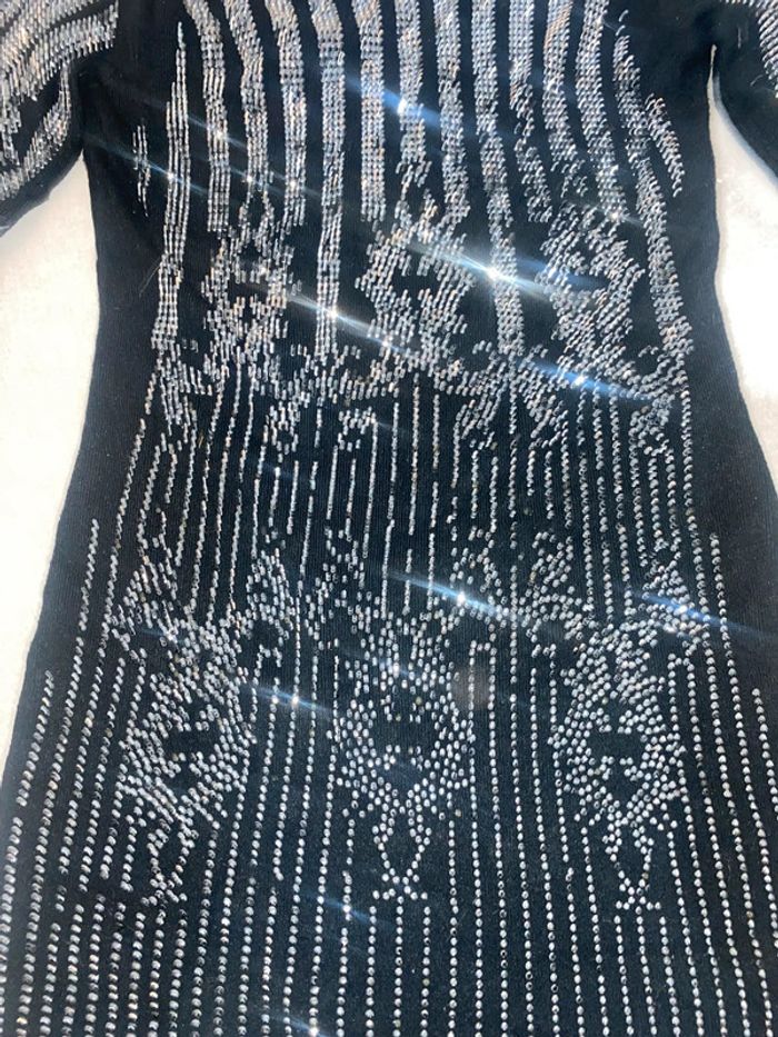 Robe pull noir avec strass taille unique 36 au 40 La robe est en très bon état juste quelque strass son partie au lavage.