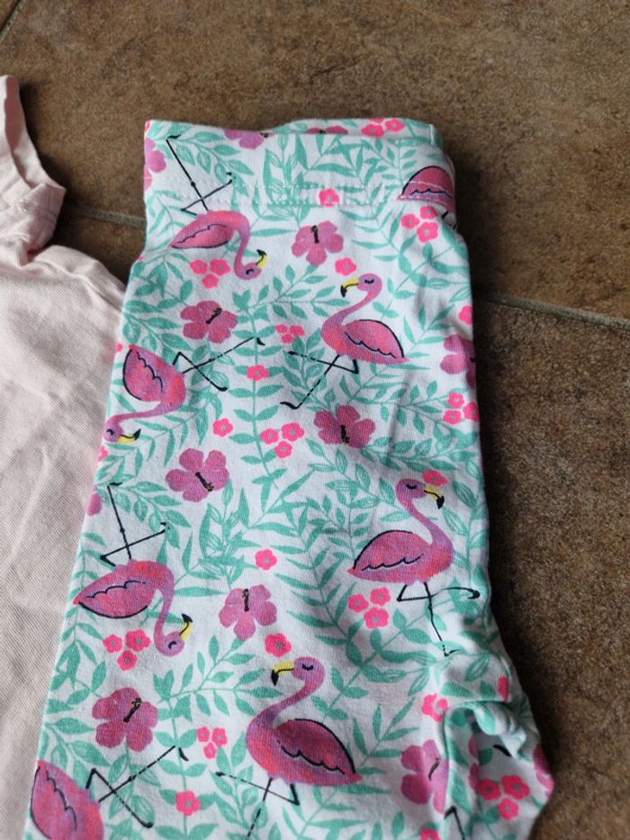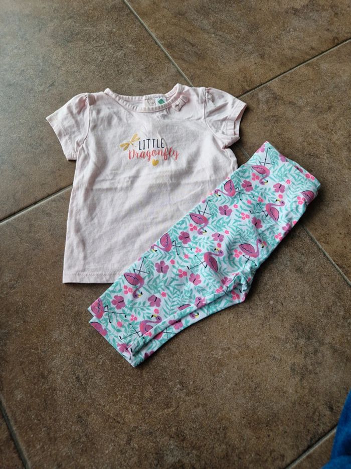 Tee shirt rose pale avec libellule (tex) Legging court avec Flamand rose (primark) 18 mois