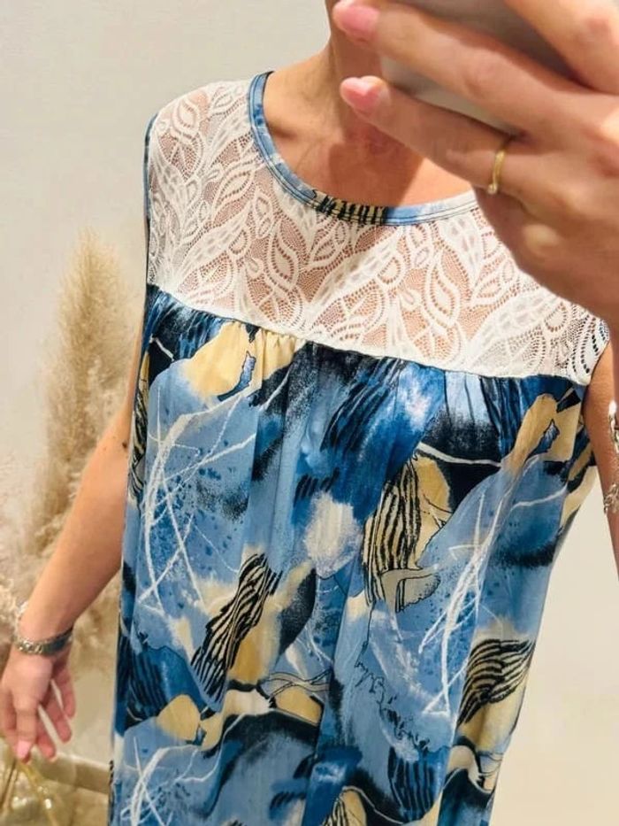 Robe femme midi sans manches bleu et dentelle - photo numéro 2