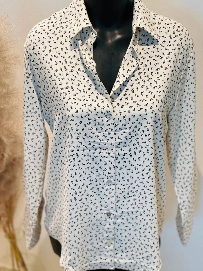 Joli Chemisier femme crème-beige et noir 38/40 - photo numéro 2