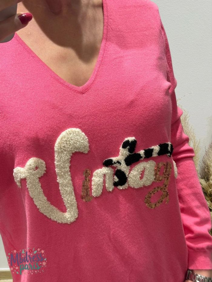Inscription vintage à sequin or et en relief Noir et blanc base rose Taille unique 36/40 S/L