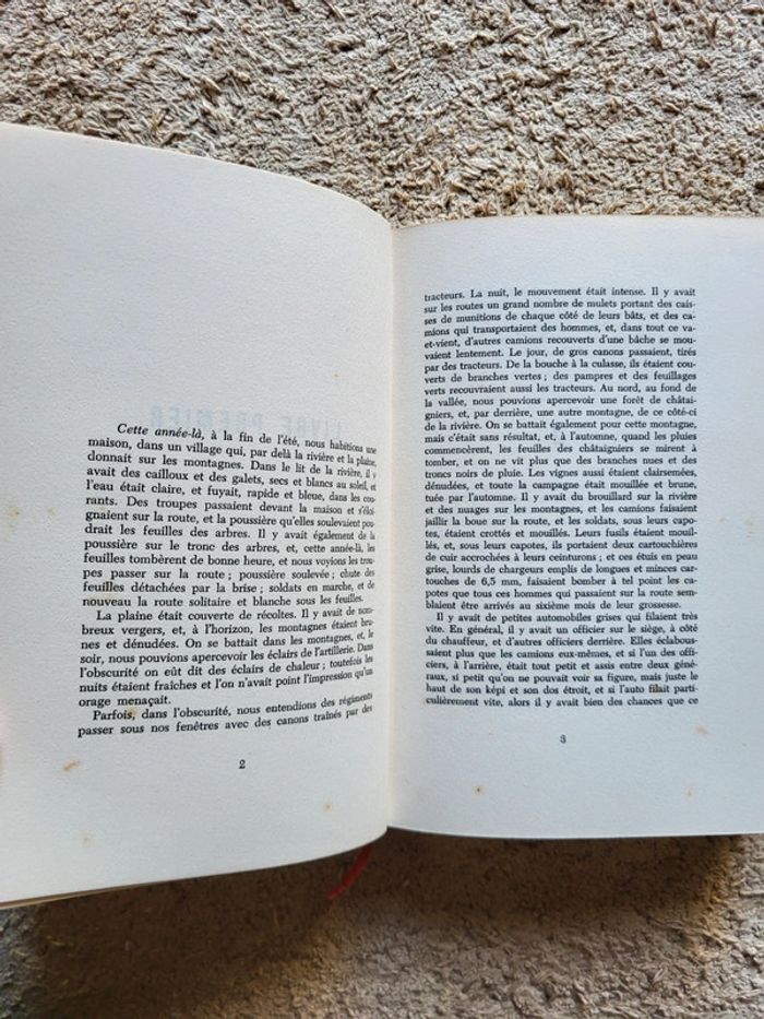 ⭐️ Nombreux livres dans mon dressing réductions sur les lots activées ✨️ 📚 Exemplaire ancien du célèbre roman L’Adieu aux armes d’Ernest Hemingway Édition de 1948 publiée par Le Club du Meilleur Livre (Librairie Gallimard). 📖 Bon état, très peu usée Couverture rigide et toilée Pages intactes mais présentant quelques tâches jaunes 📕 L’Adieu aux armes est un grand classique d’Ernest Hemingway, inspiré de sa propre expérience en tant qu’ambulancier pendant la Première Guerre mondiale. Le roman suit Frederic Henry, un jeune Américain engagé dans l’armée italienne, et son histoire d’amour intense et tragique avec Catherine Barkley, une infirmière britannique. Sur fond de guerre et de chaos, Hemingway explore les thèmes de l’amour, du courage, de la perte et de l’absurdité du conflit.