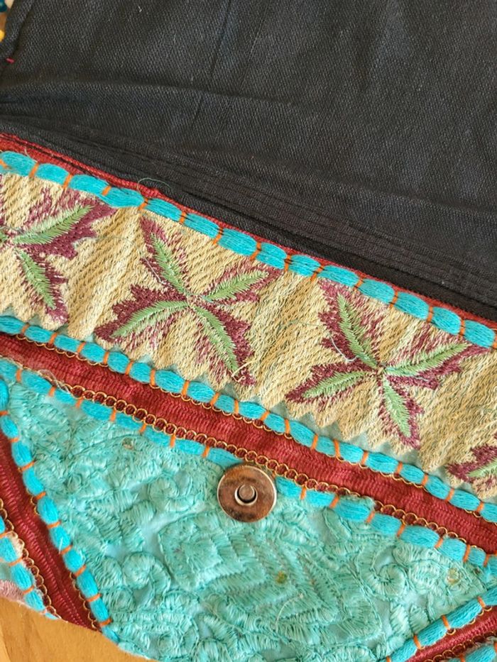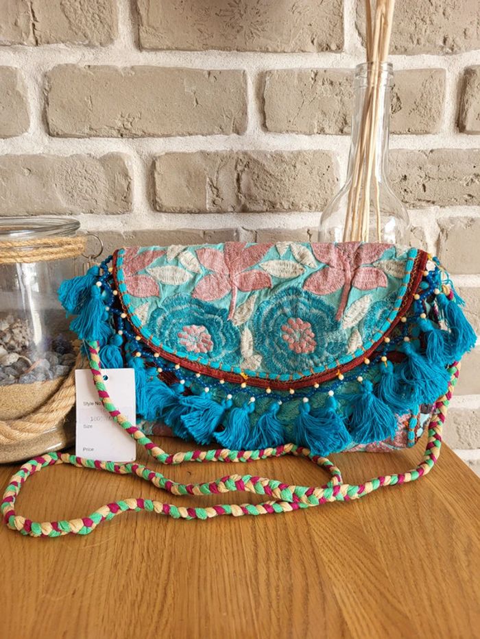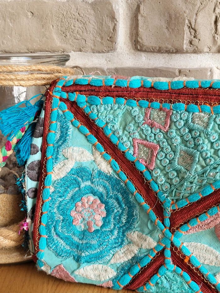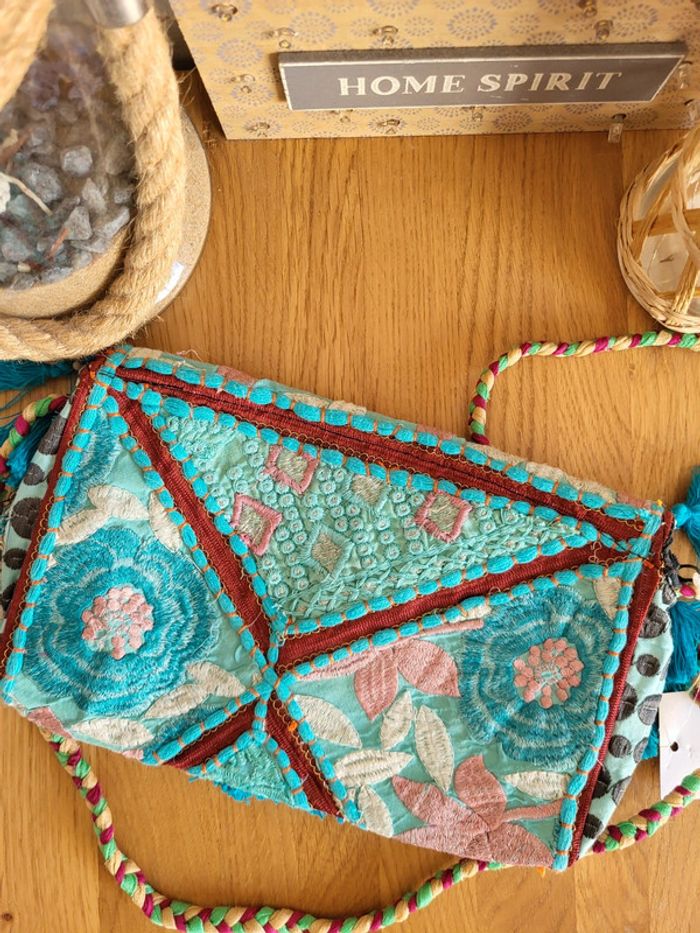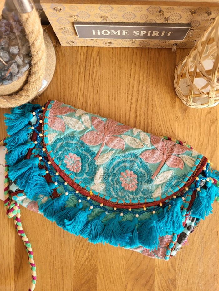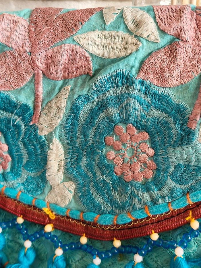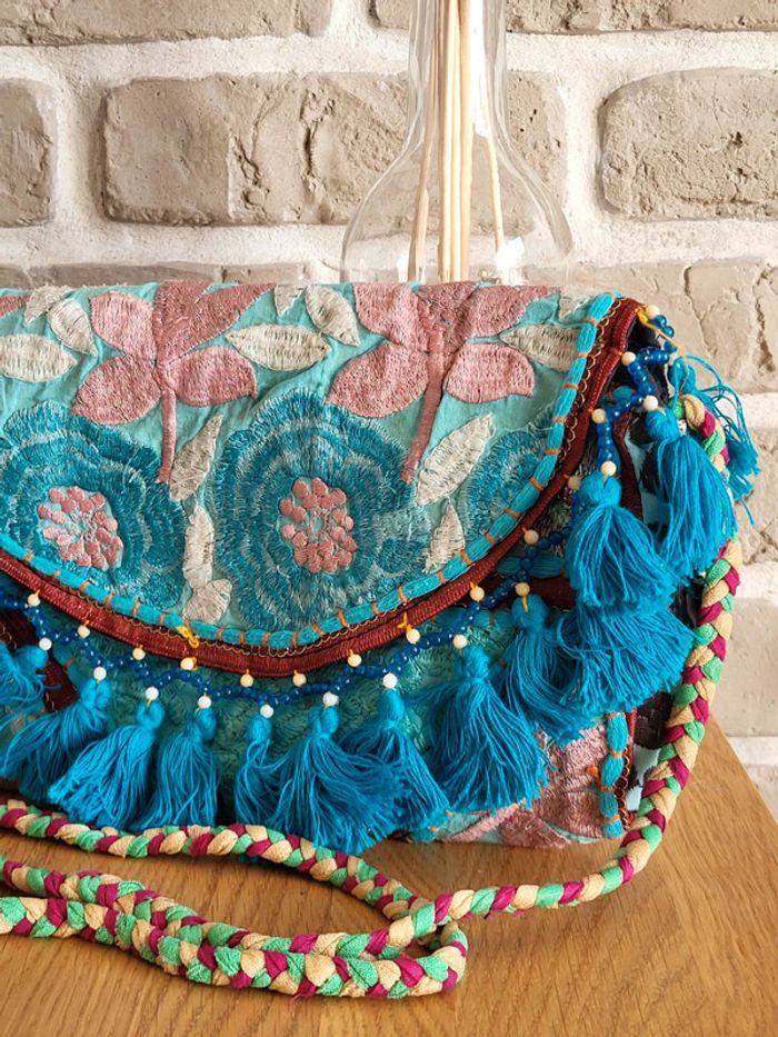 💝 Bénéficiez d'une réduction en créant lot dans mon dressing 🛍️ 🌸 Sac bandoulière au style bohème hippy chic, neuf avec étiquette 🎀 Magnifique patchwork très travaillé de broderies 100 % coton Intérieur doublé 🪷 Pompons bleus relié par une ligne de perles Lanière tressée multicolore Fermeture par rabat aimanté + fermeture éclair Il y a une pochette zippée également à l'intérieur 🍥 25 x 16 cm 🩷 Idéal pour un look estival, un festival ou pour ajouter une touche originale à votre tenue !