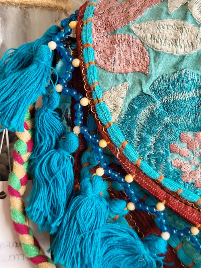 Sac bohème brodé avec perles et pompons - Neuf avec étiquette