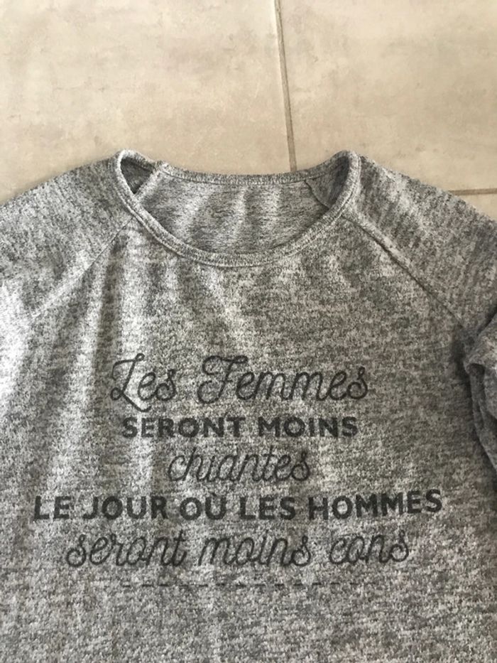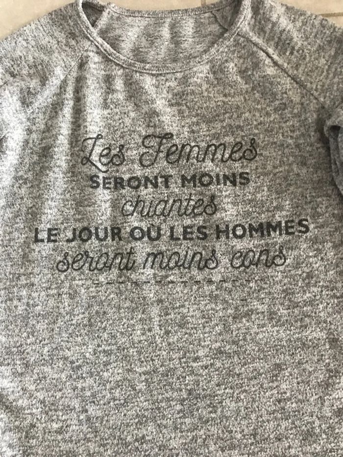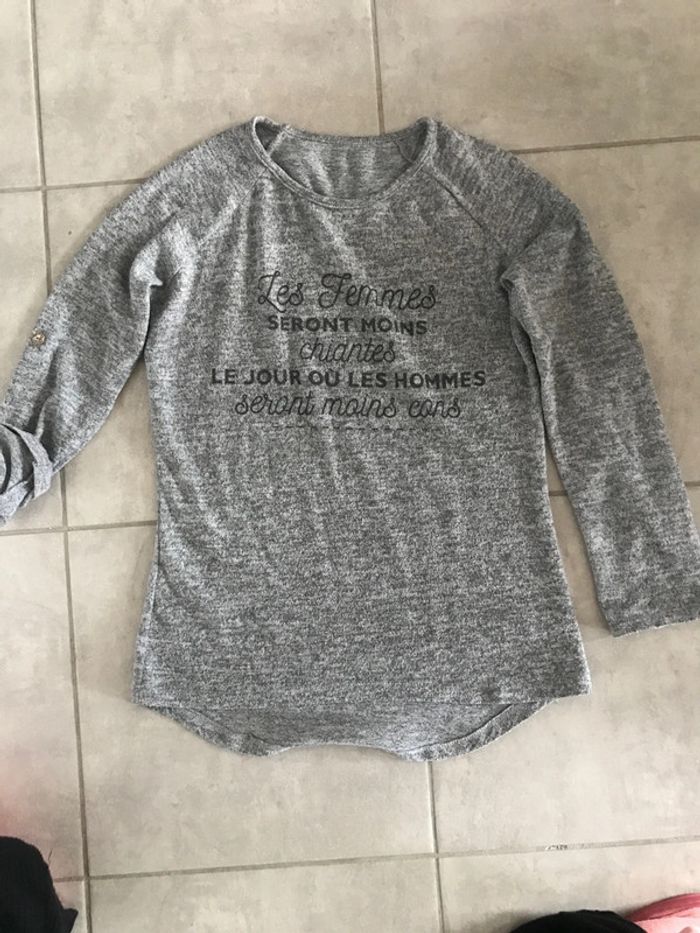 Pull avec inscription les manches se transforme.