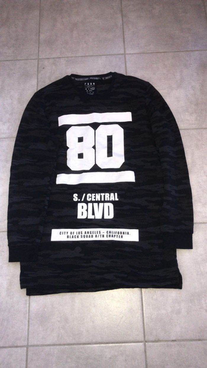 Robe pull styl américaine noir avec motif militaire . Elle peut être mise en tunique si la personne et grande .