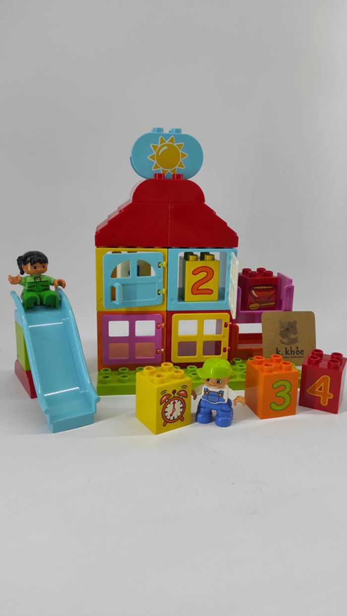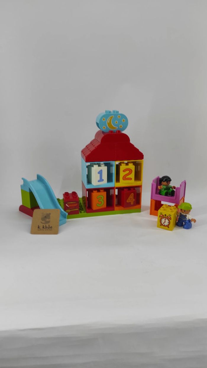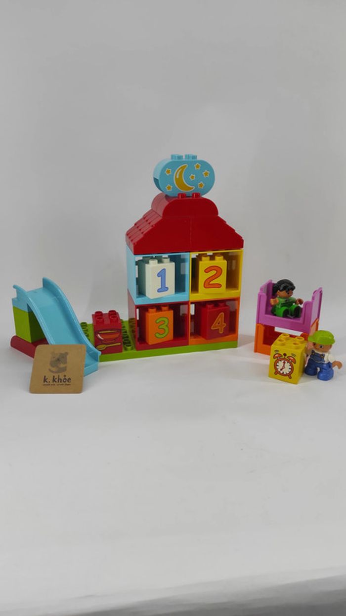 Ma première maison lego DUPLO inclut des briques décorées pour apprendre à gérer les tâches quotidiennes et une brique jour/nuit à tourner pour commencer le décor.