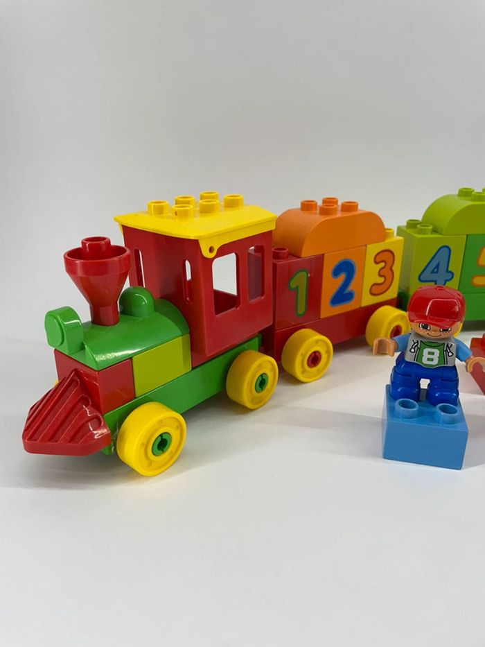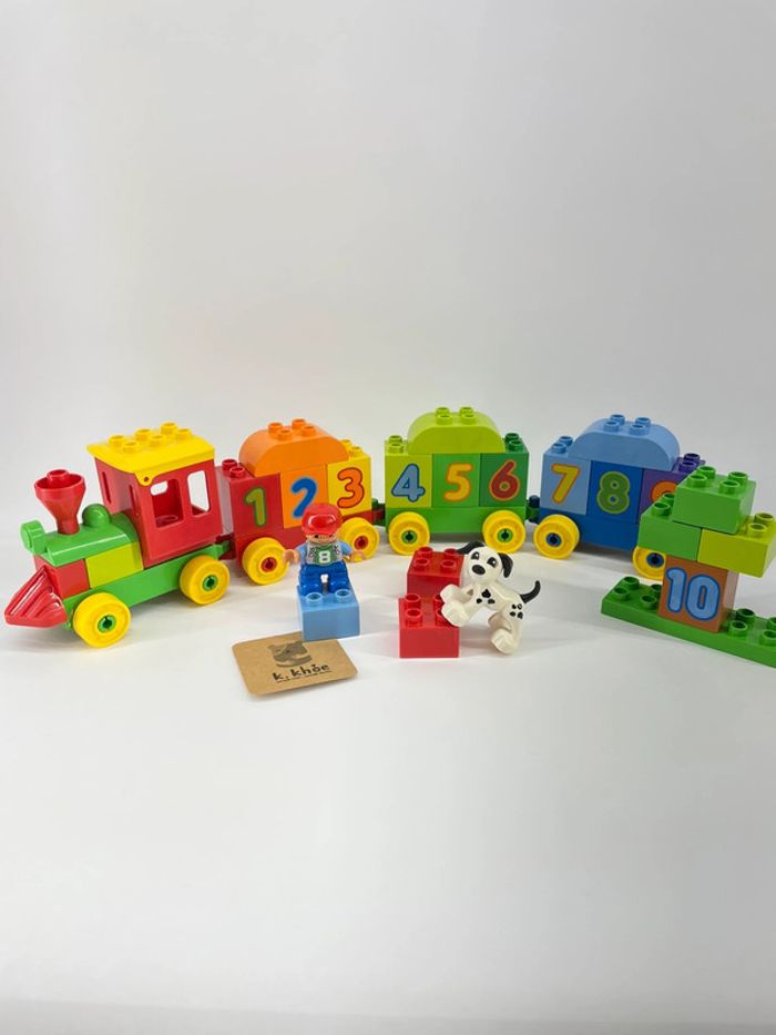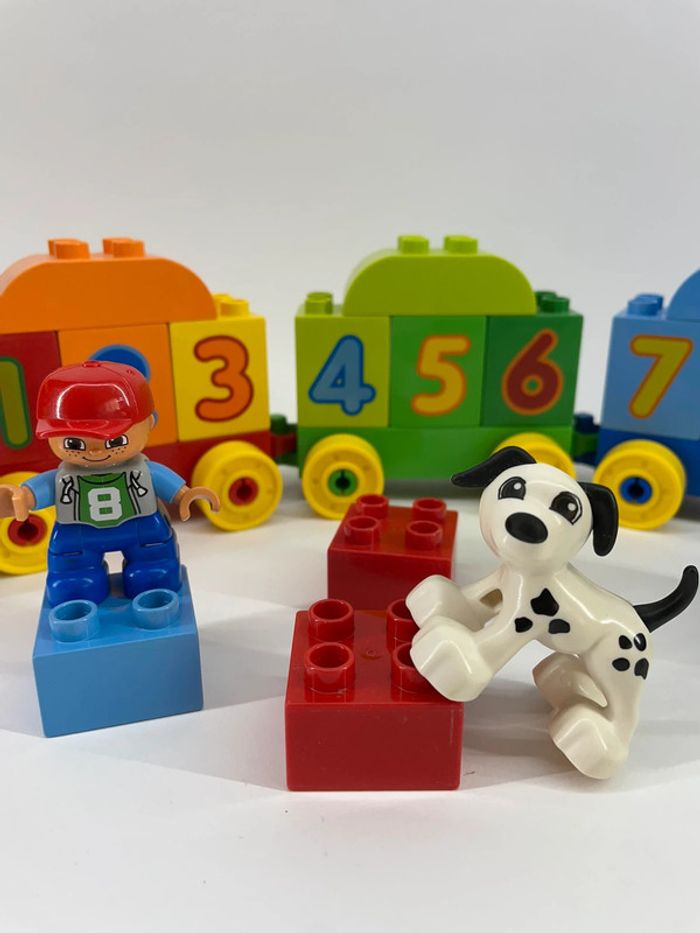 Monte à bord du train des chiffres où apprendre à compter n'a jamais été aussi amusant ! Avec des briques Duplo numérotées et 3 wagons, les jeunes constructeurs apprendront les chiffres tout en créant et en construisant leur propre train ! Se transforme en tunnel, en bâtiment, en niche et plus encore. Contient une figurine d'enfant et un chien.