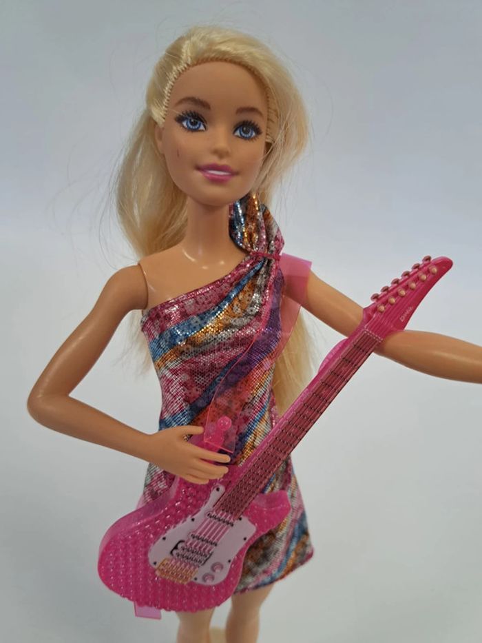 Les enfants vont revivre des concerts mémorables avec cette poupée Barbie « Malibu » dans sa tenue emblématique vue dans le film « Barbie : Big City, Big Dreams » ! Si l'on lève son bras droit, l'une des deux chansons originales se déclenche et sa robe s'illumine ! En très bonne état À partir de 6 ans Type de pile : pile bouton - LR44 Vendu sans le socle. Valeur neuf : 23 euros Produits reconditionnés #kkhoe #barbiekkhoe #barbie #6anskkhoe #6ans #7anskkhoe #7ans #8anskkhoe #8ans #9anskkhoe #9ans