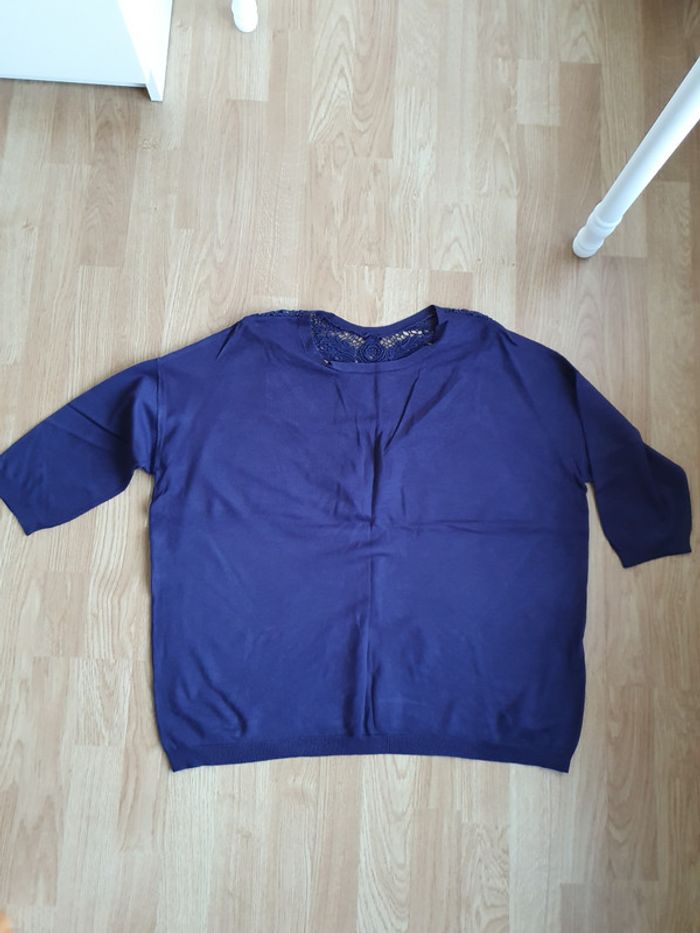 Pull bleu dentelle nafnaf - photo numéro 2