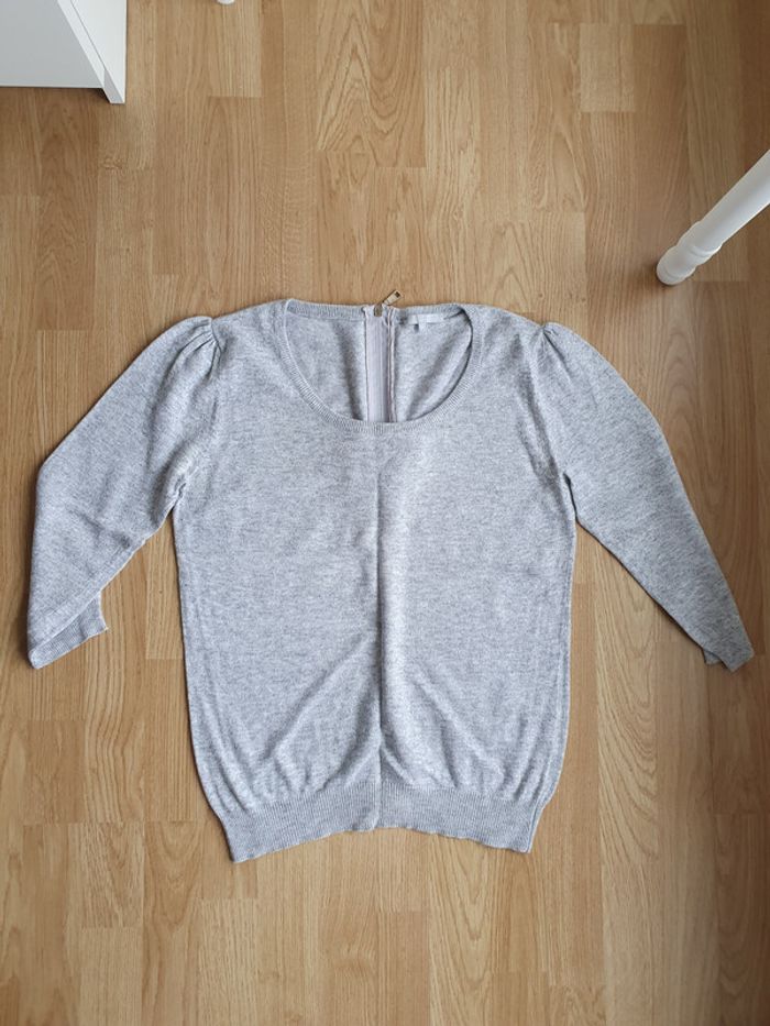 Pull Manche 3/4 gris Avec noeud noir au dos De la marque etam Petite tache rose derrière la Manche (voir photo) Taille petit
