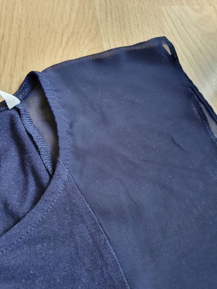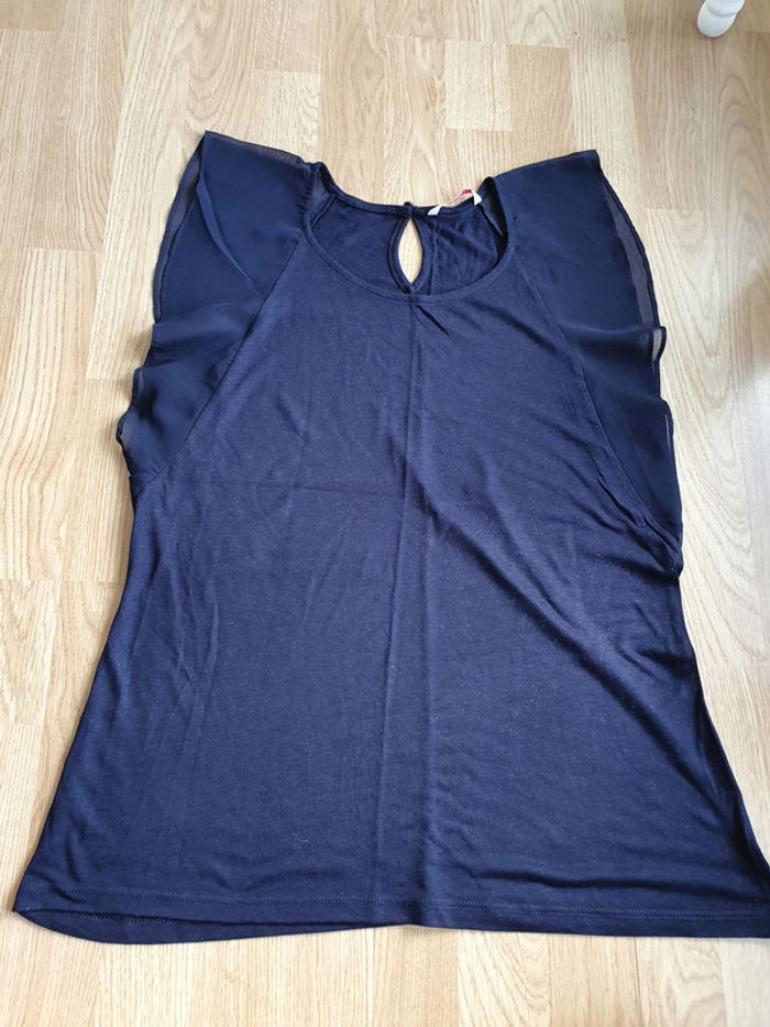 tee shirt avec petit volant transparent sur les épaules Etiquette coupé mais correspond a un L Très peu porté