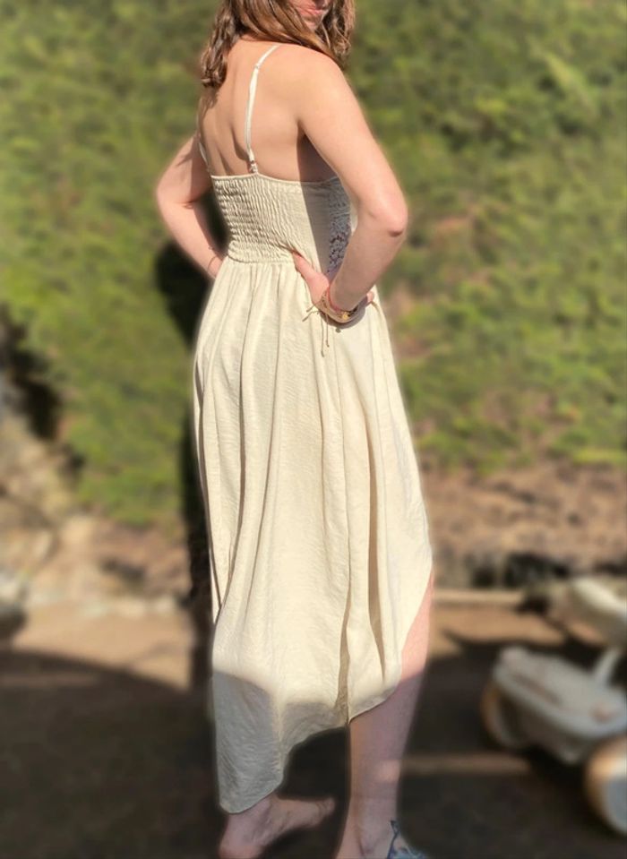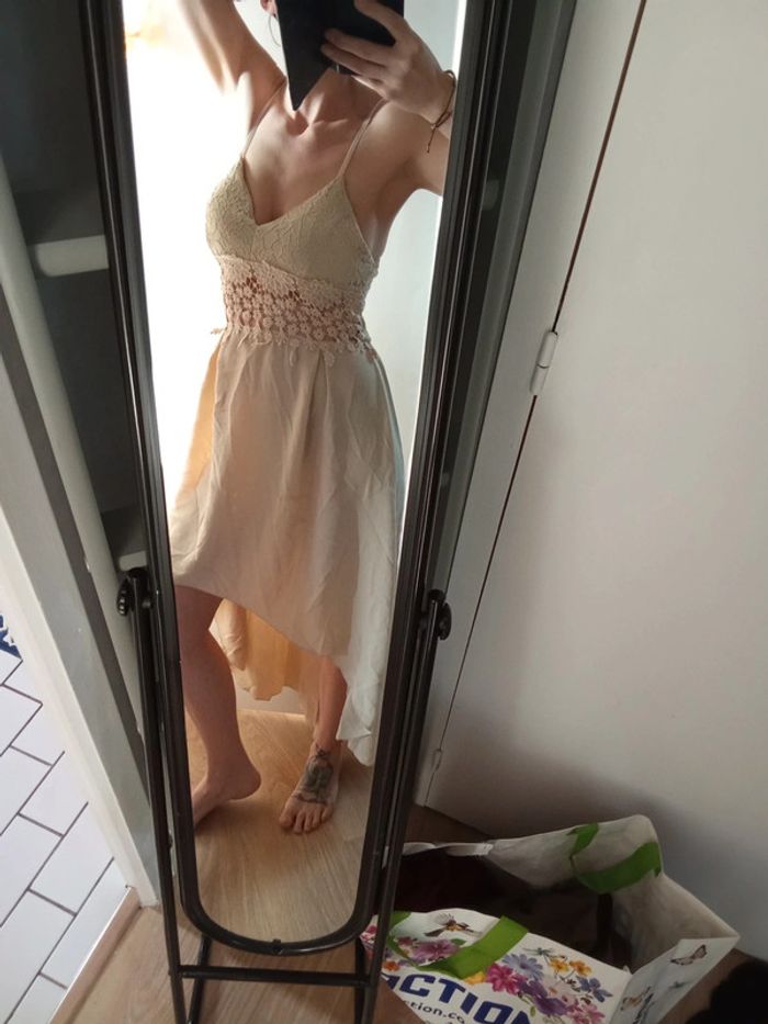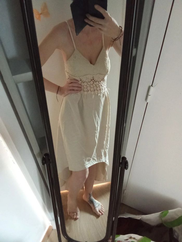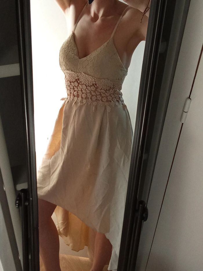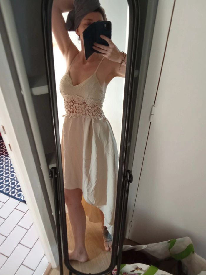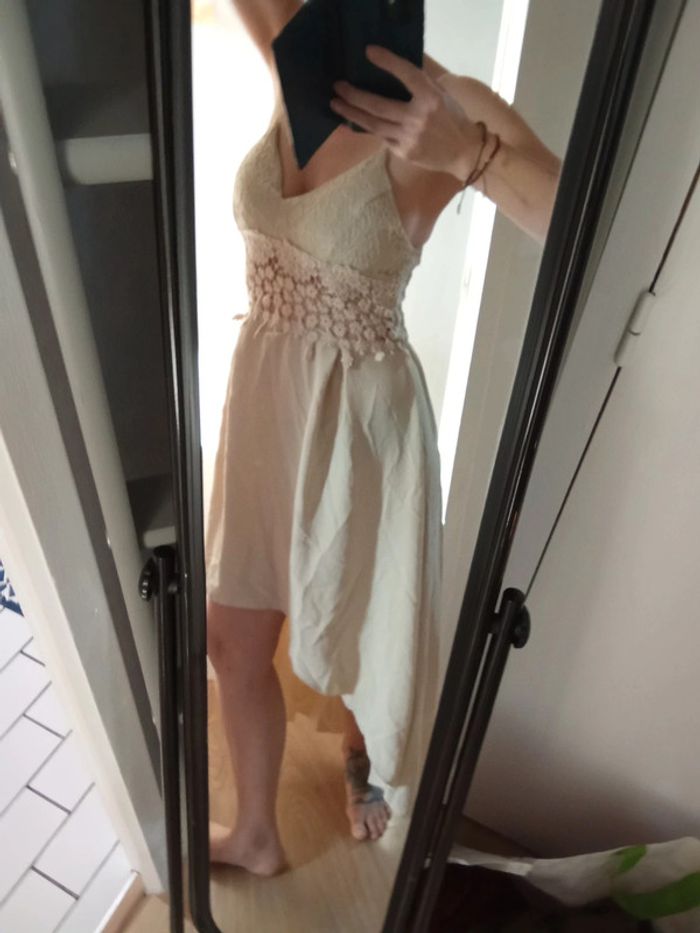 Superbe robe asymetrique - avec dentelle au niveau du buste - taille 36 - marque New Collection #robe #dress #vestido #newcollection #femme #woman #mujer #blanc #creme #cream #mariage #bapteme #celebration #asymetrique #gala #fete #party #encaje #dentelle #decollete #sexy #leger #ete #summer #wedding #boda #dafnezfemme #dafnez36