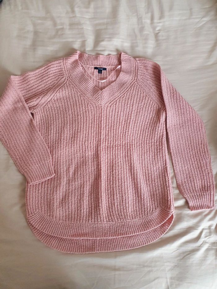 Pull rose mailles épaisses col V Porté quelques fois mais pas de défaut