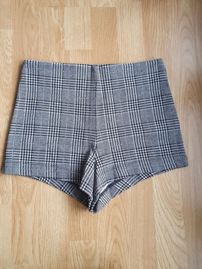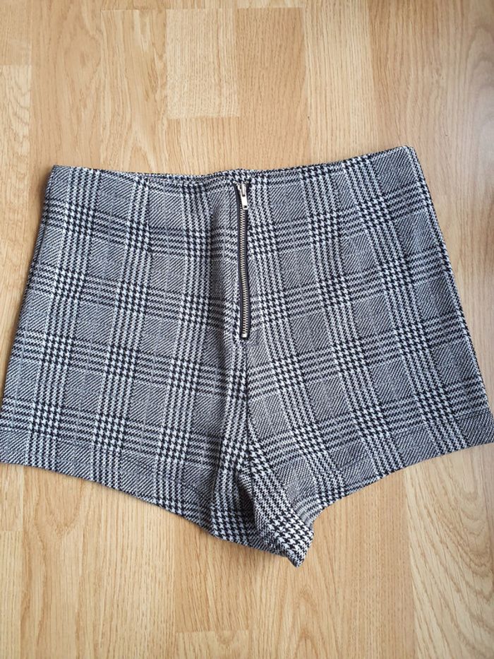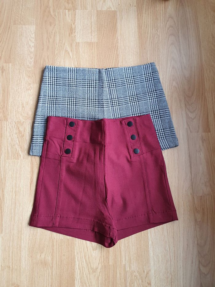 Lot de 2 short Le bordeau : tissus élastique s'ouvre avec des boutons taille haute neuf Le gris : à carreaux tissus élastique Fermeture éclair derrière Portée une fois