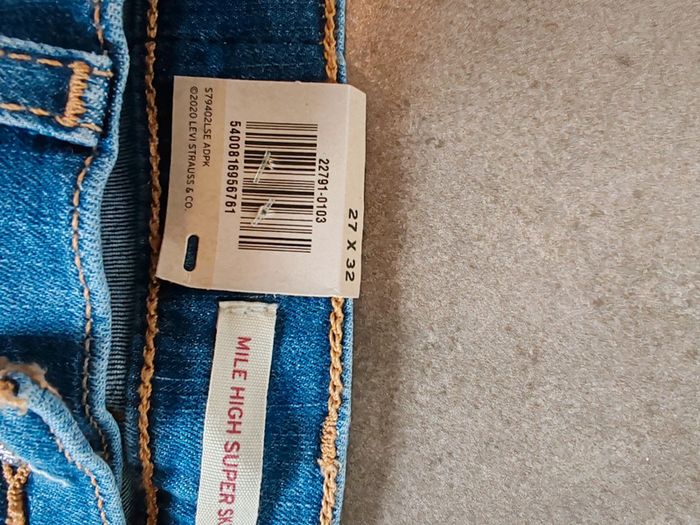 Jean Levi's modèle mile high super skinny Taille W27 L32 Taille haute Coupe ajustée au niveau des hanches et des cuisses #levis #jeanlevis #neufavecetiquette #milehighsuperskinny
