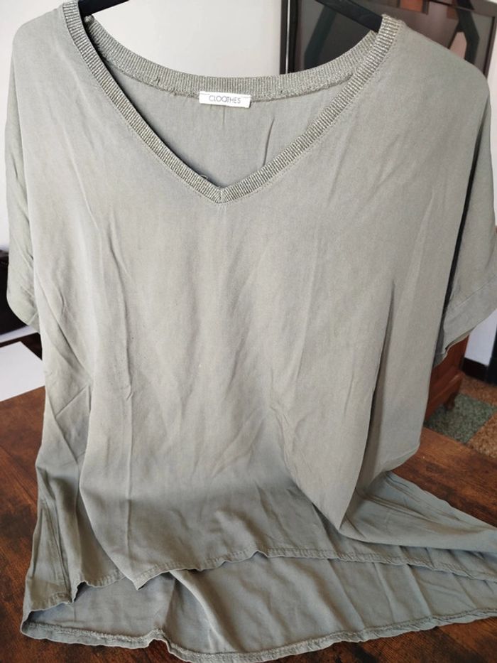 Couleur vert kaki ..léger et fluide en viscose ...62 cm largeur d aisselle