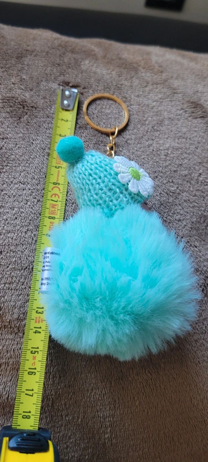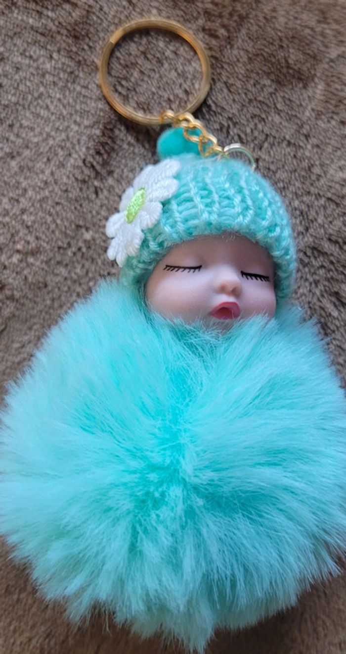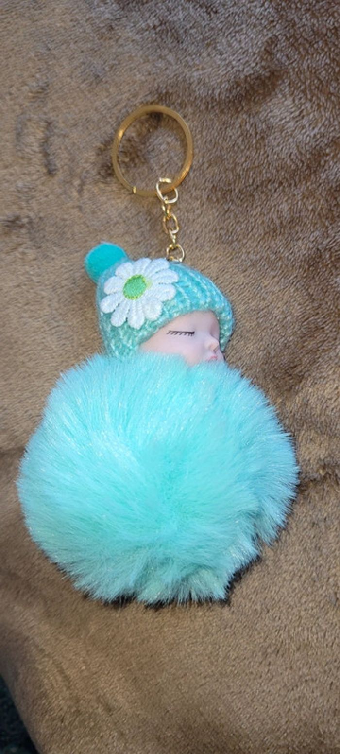 Porte-clé bébé tout mignon vert pompom tout doux - photo numéro 4
