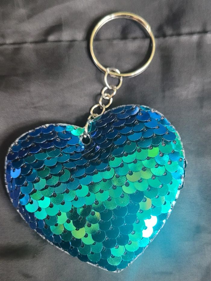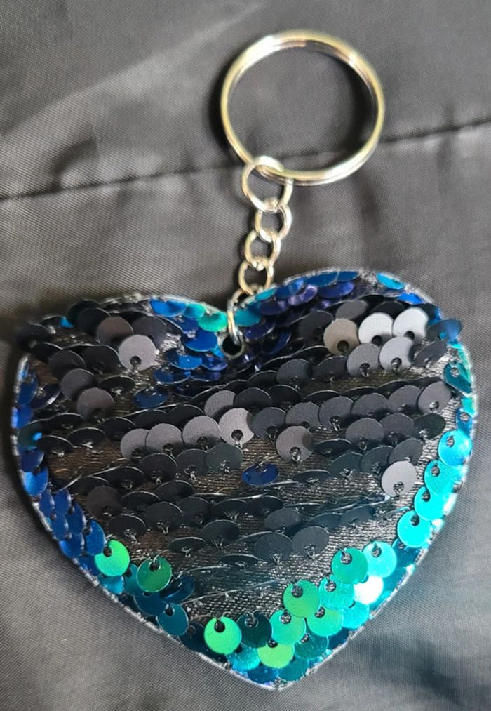 Porte-clés coeur brillant sequins réversible - photo numéro 1