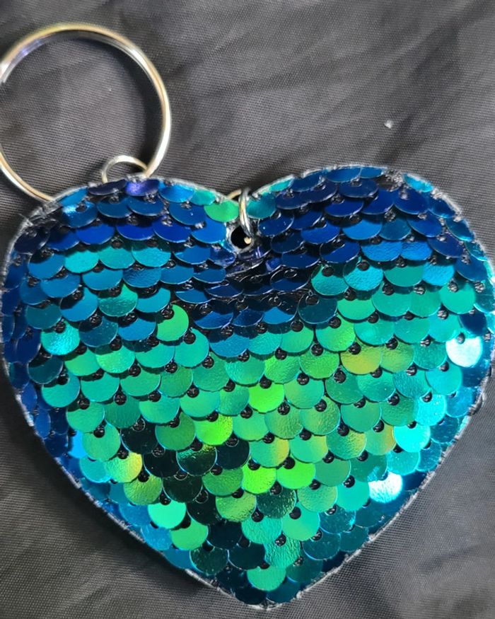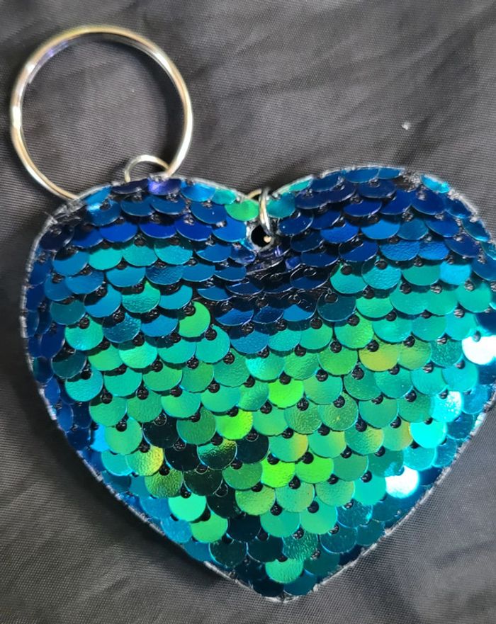Porte-clés coeur brillant sequins réversible - photo numéro 4