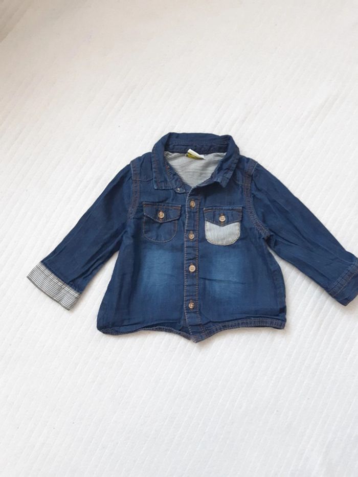 Tenue chemise en jean et pantalon noir 9 mois - photo numéro 1